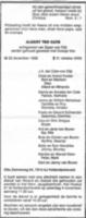 Albert ten Cate, zn. van Roelof ten Cate (grondwerker) en Dina Bos, geb. te Hoogeveen [dr] op 22 dec 1928, ovl. te Hoogeveen [dr] op 31 okt 2000, begr. op 4 nov 2000, tr. (2) met Afgeschermd . Uit dit huwelijk geen kinderen, tr. (1) te Hoogeveen [dr] op 4 aug 1954 met