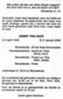 Geert ten Kate, geb. te Hoogeveen [dr] op 9 apr 1945, ovl. te Nieuwlande [dr] (Hoogeveen) op 31 jan 2000, begr. te Nieuwlande [dr] op 4 feb 2000. |