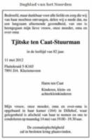 Tjitske Stuurman (Stuurmans), geb. te Groningen [gr] op 20 jul 1929, ovl. te Klazienaveen [dr] op 11 mei 2012, gecr. op 15 mei 2012.