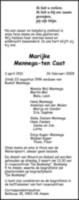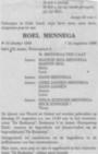 | in Parenteel van Fake Booij Roelof (Roel) Mennega, geb. te Assen [dr] op 10 okt 1929, ovl. te Assen [dr] op 22 aug 1996, begr. te Assen [dr] begraafplaats 'De Boskamp' aan de Boskamp 5 op 27 aug 1996. |