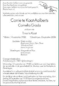 Grada Hendrina Maria (Gerda) te Kaat, dr. van Johannes Bernardus te Kaat (landbouwer) en Maria Aalberts,