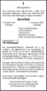 Johannes Josephus (Jan) te Kaat, zn. van Johannes Hendrikus te Kaat (landbouwer (1912)) en Maria Berendina Konink,