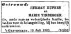 | in Parenteel van Abraham ten Cate Herman Jacobus Arnold Hupkes, geb. te Arnhem [ge] op 30 dec 1873, winkelier, ovl. te Arnhem [ge] op 28 mei 1927. |