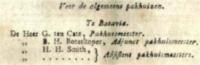 | in Parenteel van Abraham ten Cate Gerrit ten Cate, geb. te Zwolle [ov] op 14 dec 1767, ged. NG te Zwolle [ov] Grote kerk op 16 dec 1767, pres. K.v.K, lid gem. raad te Zwolle lid v.d. Algemene Rekenkamer (1816); algemeen pakhuismeester (1819); superintendant van het vendukantoor (1821); buitenregent van het weeshuis te Batavia, ovl. te Kaap de Goede Hoop [ca, R.S.A.] op 12 apr 1824. |