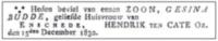 ovl. te Velp [ge] op 2 mei 1887 (vlg. Ned. Patriciaat jrg. 14 (1924), en Dr. A. van Benthem, De geschiedenis van Enschede en zijne naaste omgeving, 2e druk 1920, blz. 639, overl. 24-2-1871).