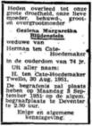 | in Parenteel van Abraham ten Cate Geziena Margaretha (Ina) Blijdenstein, geb. te Lonneker [ov] (Noord-Eschmarke) op 11 sep 1876. Tweeling met Anna Elisabeth, adres: woont Villa "Sperlette", Twello [ge] in 1951, ovl. te Deventer [ov] op 30 aug 1951 wonende te Voorst, Twello villa "Sperlette", begr. te Deventer [ov] Algemene Begraafplaats op 3 sep 1951. |