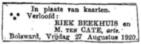 Vlg. fam. adv. overl. van haar zn. Jan Othmar ten Cate woont zij in 1989 te Breda.