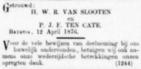 Pieter Johannes Folkert van Slooten, zn. van Hendrik Willem Reinier van Slooten (geëmployeerde in de handel te Batavia (1876)) en Petronella Johanna Frederika ten Cate,