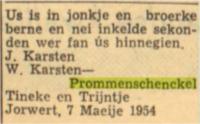 | Zoon Karsten, geb. te Jorwerd [fr] op 7 mei 1954 (doodgeb.). |