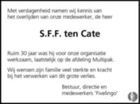 Rudy ten Cate diende als sergeant vlieger kv. bij het KNIL van 15 aug.1940 tot 18 mei 1949. Volgens zijn japanse interneringskaart was hij ingedeeld bij de 3de afd. vlieggroep IV [vliegtuig type: Brewster Buffalo B-339D fighter] gestationeerd te Madioen en was hij voor zijn indiensttreding tuin employé in rubber en koffie. Hij werd op 8 maart 1942 op het vliegveld Bandjar bij Tasikmalaja (Java) door de japanners krijgsgevangen gemaakt en geinterneerd op 5 aug.1942 in een kamp op Java(?). Later werd hij afgevoerd naar kamp Fukuoka 7B en Shiniisuka 30 km. van Nagasaki, waar hij op 20 mei 1943 aankwam. Nadat hij op 9 aug.1945 de atoombom op Nagasaki zag vallen, kwam voor hem de bevrijding op 21 sept. 1945. Werd terug van weggeweest ingedeeld bij het 19e squadronNEI, als 2e vlieger op een C 47 Dakota. Na zijn diensttijd emigreerde hij naar Australië. Op 18 december 1949, arriveerde hij in Darwin, Australië op G Alam [?]. Hij had de (Indisch-) Nederlandse nationaliteit. Hij was o.a. commercieel vlieger bij de K.L.M, T.A.A. (Trans Australian Airlines) en vloog daarna voor Lindeman Aerial Services. Deze maatschappij was eigendom van Lindeman Island, toen een familiebezit, dat toen een druk bezochte plek was voor de kust van Queensland op het grote Barrier rif. Het gezin verhuisde daarom naar Mackay in North Queensland. Hij werd in 1975 Rooms -Katholiek en woonde bij zijn overlijden 168 Mallawa Drive, Palm Beach, Queensland Australië. Rudy ten Cate, leed op latere leeftijd aan prostaatkanker, waar hij van genas; kreeg een hartaanval in 1994 en overleed in 1999 aan de gevolgen van hartfalen. Hij hield van tuinen en verzamelde munten en postzegels.