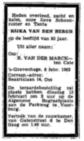 | Rika (Rijka) van den Bergh, geb. te Tilburg [nb] op 7 mei 1878, ovl. te Den Haag [zh] op 8 feb 1962, begr. te Voorburg [zh] Algemene Begraafplaats, Parkweg op 13 feb 1962. |