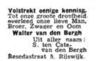 | Walter van den Bergh, geb. te Tilburg [nb] op 29 okt 1887, ovl. te Voorburg [zh] op 30 dec 1943. |
