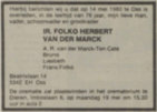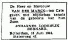 | in Parenteel van Abraham ten Cate Johannes Lodewijk Bernard van der Marck, geb. te Rotterdam [zh] op 16 jun 1944, ovl. te Rotterdam [zh] op 17 jun 1944. |