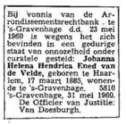 | Johanna Helena Hendrica Ened van de Velde, geb. te Haarlem [nh] op 17 mrt 1885, ovl. vermoedelijk te Den Haag [zh] na 1960. |